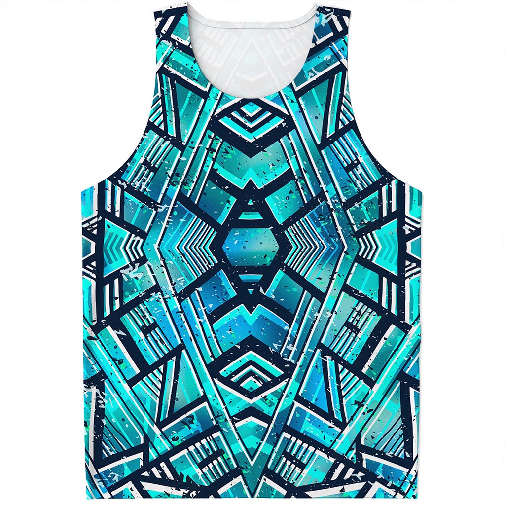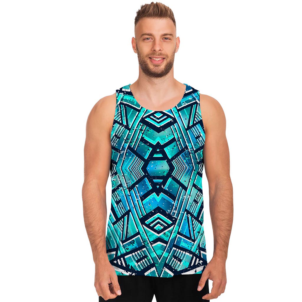 Are you looking for unique tank tops? Check our Turquoise Ethnic Aztec Trippy Print Men's Tank Top on GearFrost. Our tank tops are handcrafted to the highest quality standards and made-to-order for you!