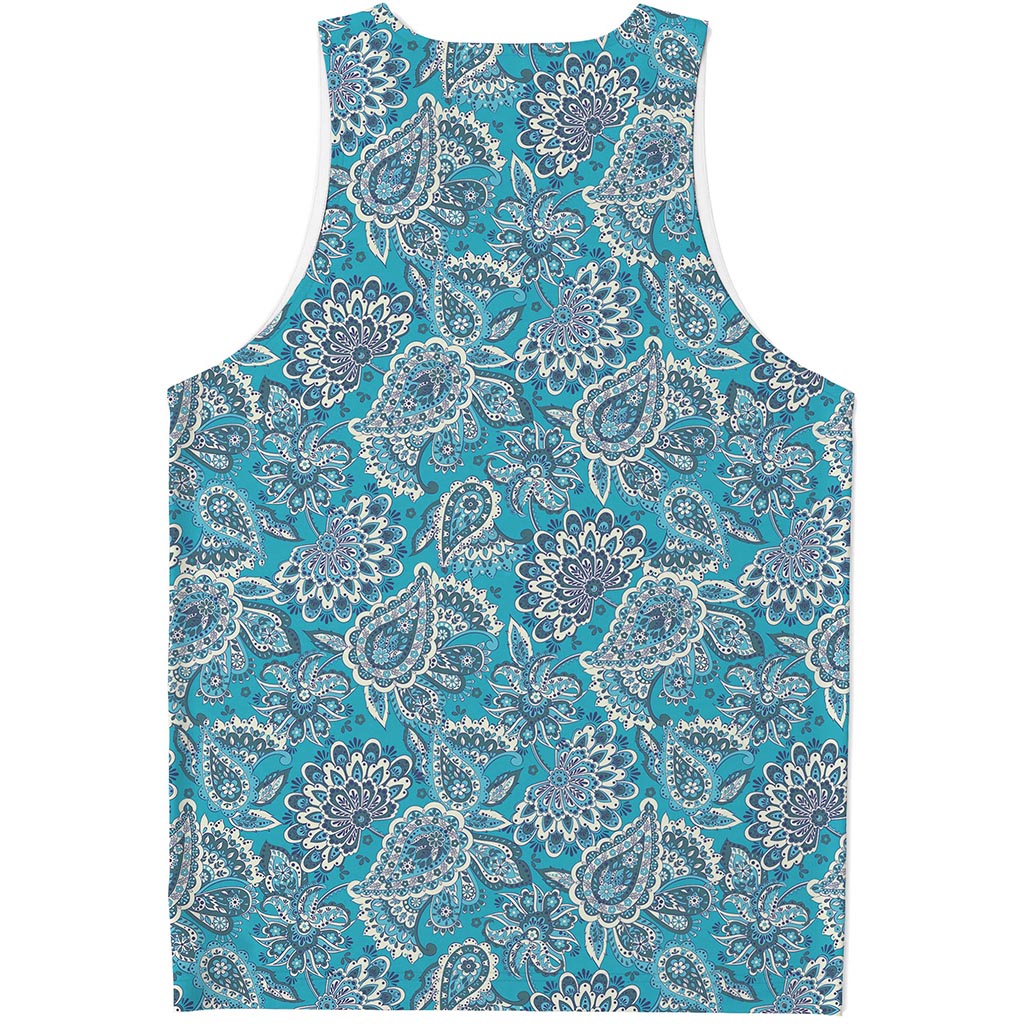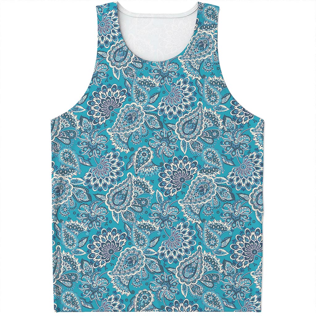 Are you looking for unique tank tops? Check our Turquoise Floral Bohemian Pattern Print Men's Tank Top on GearFrost. Our tank tops are handcrafted to the highest quality standards and made-to-order for you!