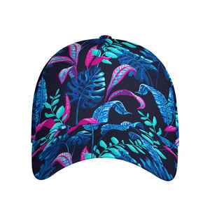 Teal Hawaiian Leaf Flower Pattern Print Baseball Cap