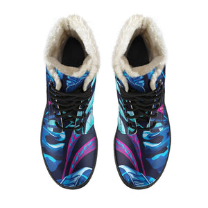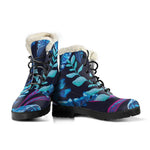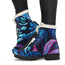 Blue Purple Cosmic Galaxy Space Print Faux Fur Leather Boots