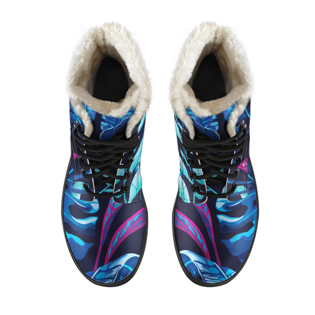 Combine cozy warmth with standout style in the versatile Turquoise Hawaii Tropical Pattern Print Faux Fur Leather Boots. Designed to keep you comfortable without compromising on fashion, these faux fur leather boots are a must-have addition to your footwear collection. Whether you’re braving chilly weather or adding an edgy touch to your outfit, these boots offer the perfect mix of practicality and personality.