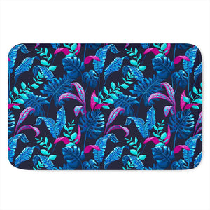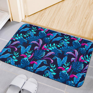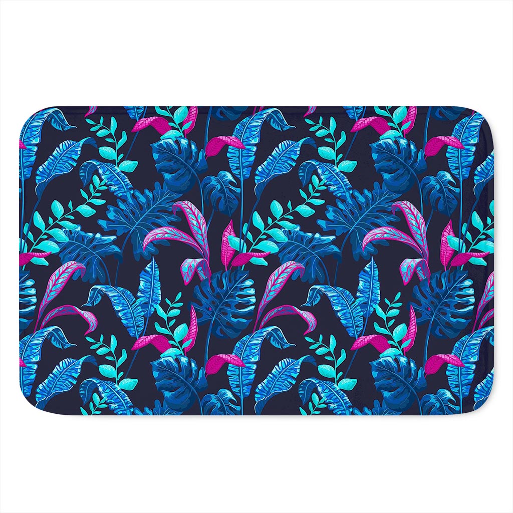 Dark Tropical Palm Leaf Pattern Print Floor Mat