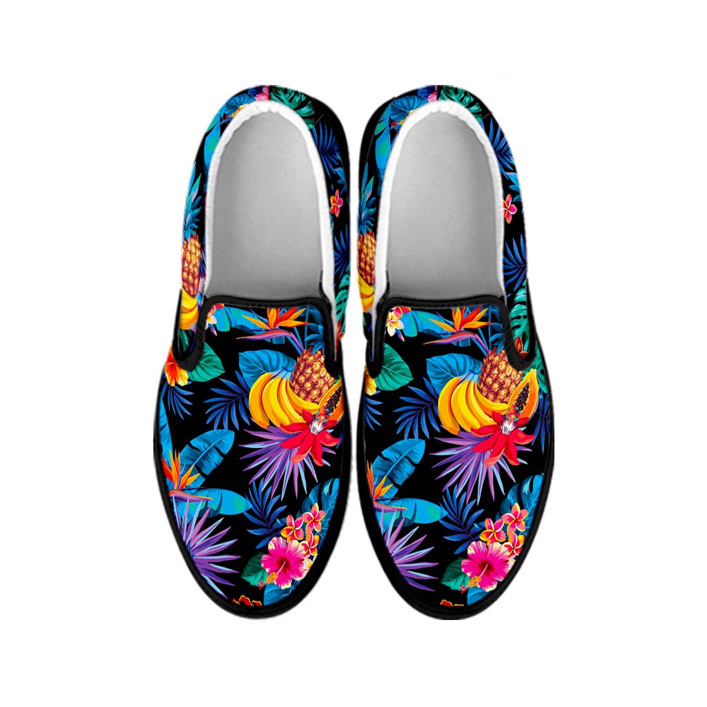 Are you looking for unique sneakers? Check our Turquoise Hawaiian Fruits Pattern Print Black Slip On Sneakers on GearFrost. Our sneakers are handcrafted to the highest quality standards and made-to-order for you!