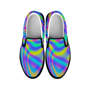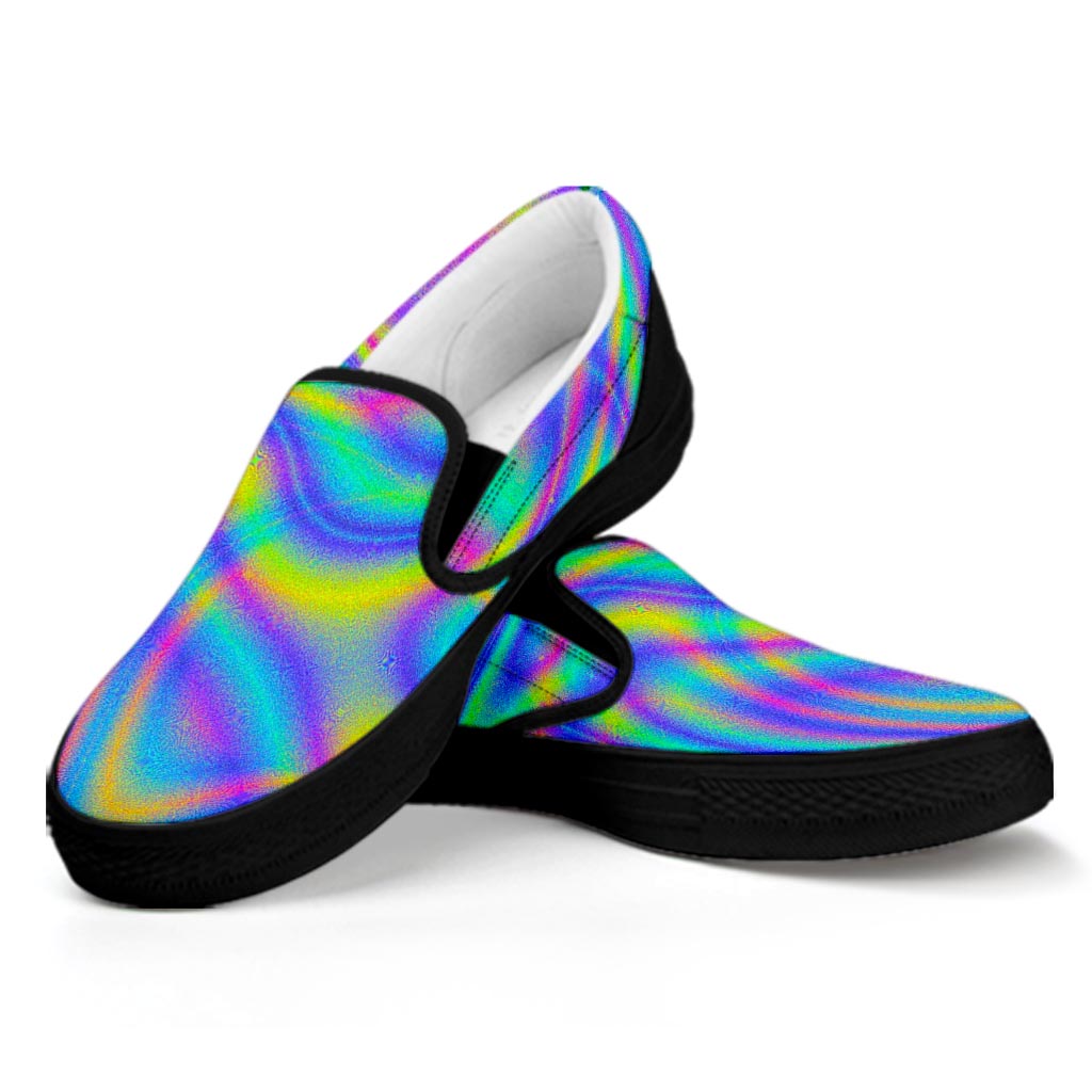 Are you looking for unique sneakers? Check our Turquoise Holographic Trippy Print Black Slip On Sneakers on GearFrost. Our sneakers are handcrafted to the highest quality standards and made-to-order for you!