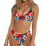 Turquoise Leaves Hibiscus Pattern Print Front Bow Tie Bikini