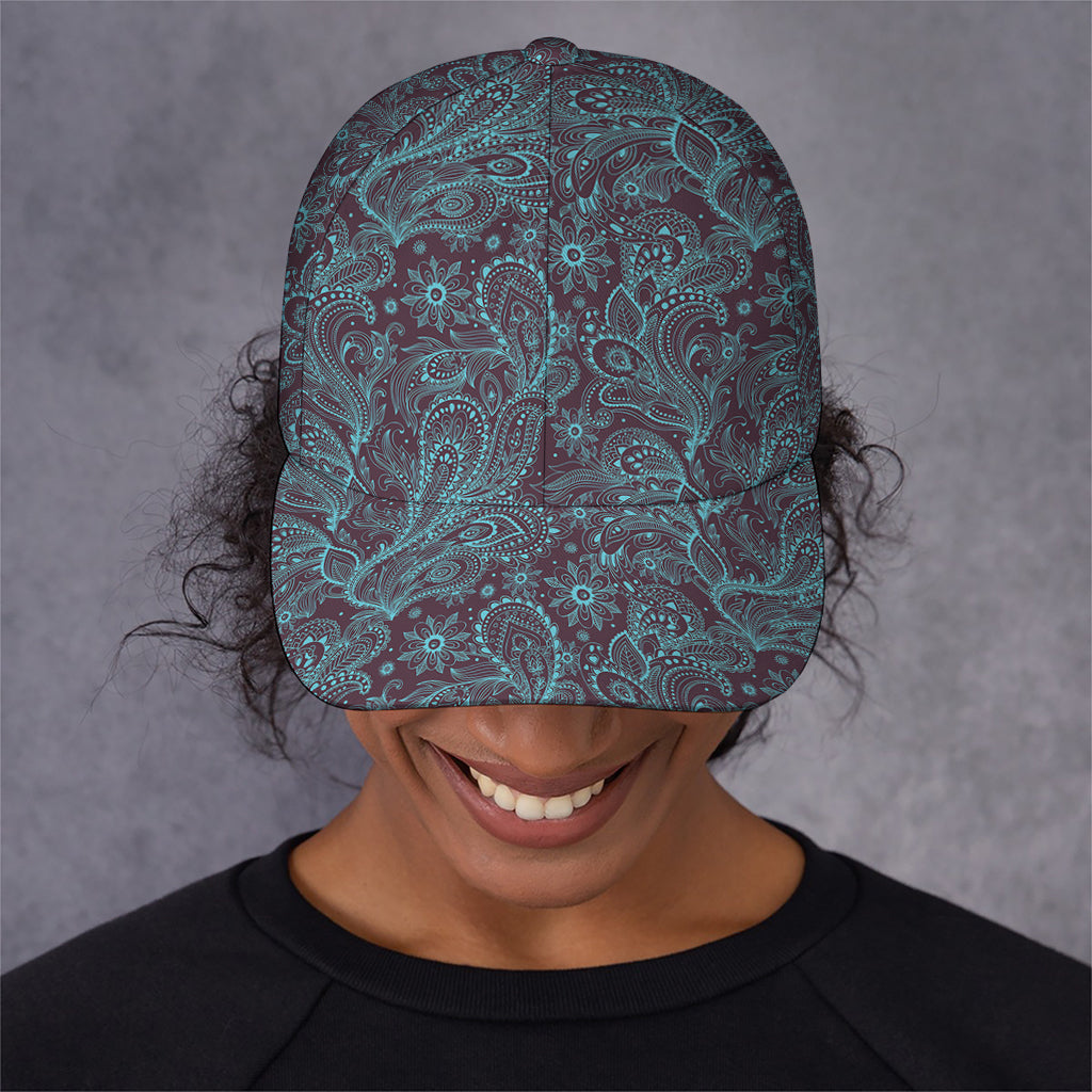 Top off your look with the stylish and functional Turquoise Paisley Pattern Print Baseball Cap. Designed for comfort and durability, this baseball cap is the perfect accessory for casual outings, outdoor activities, or simply elevating your everyday style. Its sleek design and practical features make it a wardrobe essential for anyone who values both form and function.