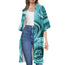 Turquoise Rose Flower Print Open Front Beach Cover Up