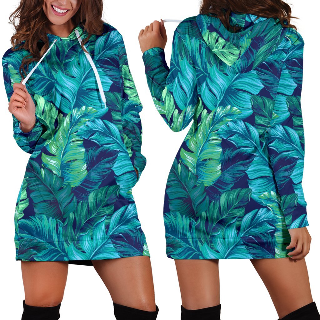 Are you looking for unique hoodie dresses? Check our Turquoise Tropical Leaf Pattern Print Pullover Hoodie Dress on GearFrost. Our hoodie dresses are handcrafted to the highest quality standards and made-to-order for you!