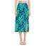 Turquoise Tropical Leaf Pattern Print Side Slit Midi Skirt