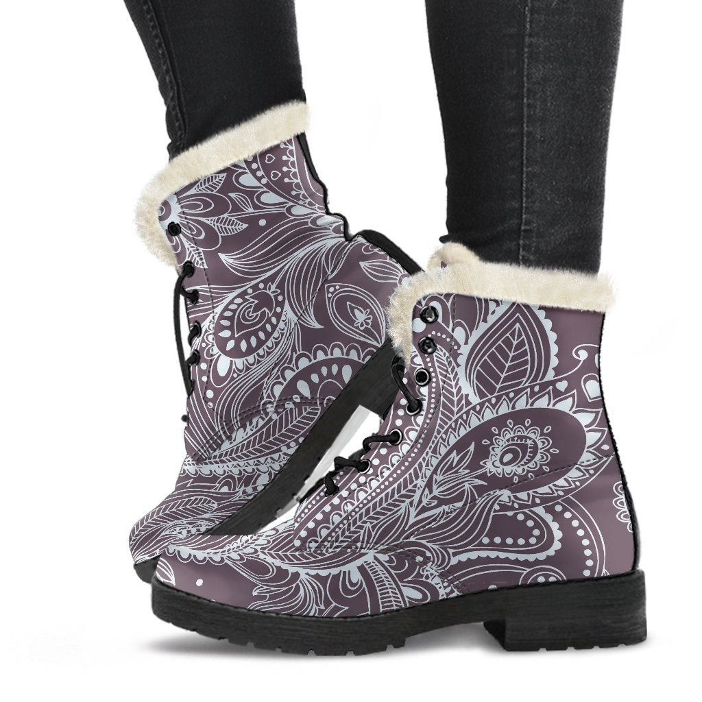 Combine cozy warmth with standout style in the versatile Umber Floral Bohemian Pattern Print Faux Fur Leather Boots. Designed to keep you comfortable without compromising on fashion, these faux fur leather boots are a must-have addition to your footwear collection. Whether you’re braving chilly weather or adding an edgy touch to your outfit, these boots offer the perfect mix of practicality and personality.