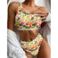 White Pineapple Pattern Print One Shoulder Bikini Set