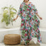 Vintage Cactus And Flower Print Silk V-Neck Kaftan Dress