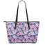 Vintage Lotus Flower Print Leather Tote Bag With Zipper