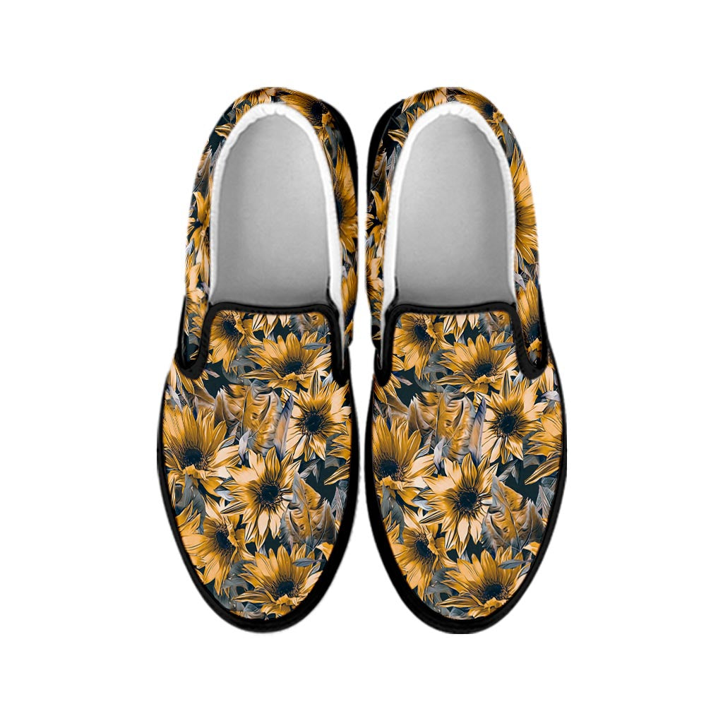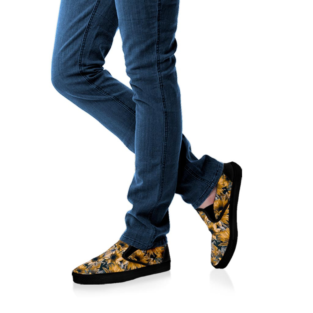 Are you looking for unique sneakers? Check our Vintage Sunflower Pattern Print Black Slip On Sneakers on GearFrost. Our sneakers are handcrafted to the highest quality standards and made-to-order for you!