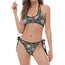 Rose Sugar Skull Pattern Print Halter Scoop Tie Side Bikini