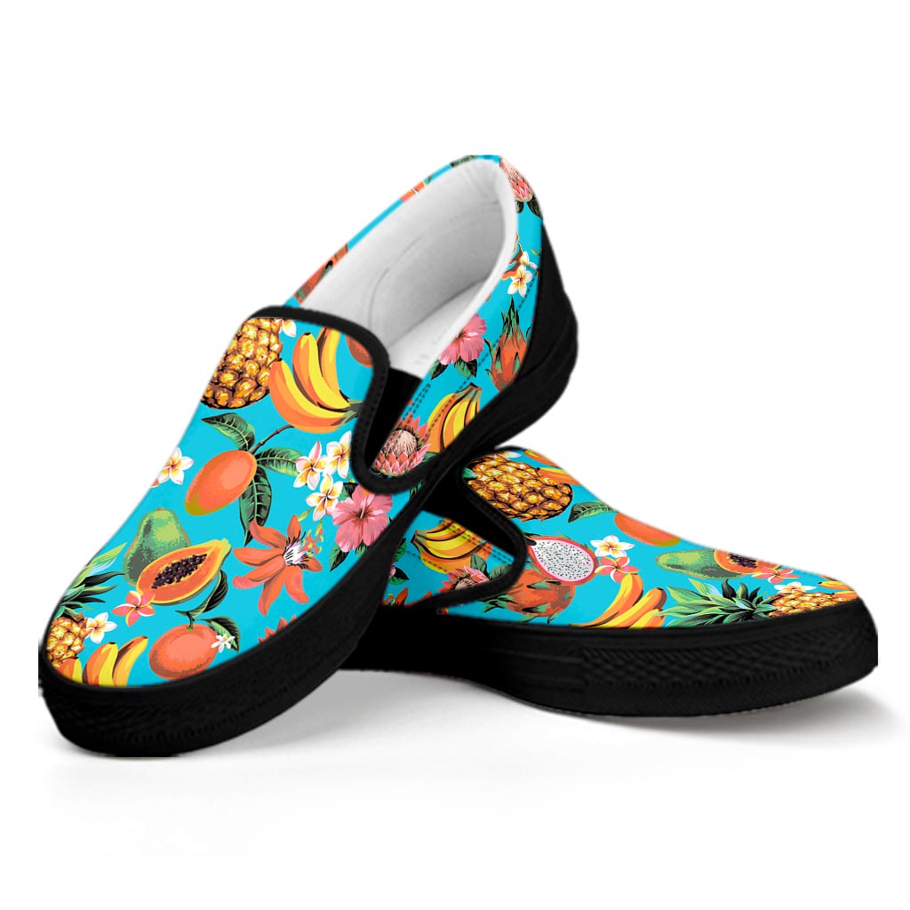 Are you looking for unique sneakers? Check our Vintage Tropical Fruits Pattern Print Black Slip On Sneakers on GearFrost. Our sneakers are handcrafted to the highest quality standards and made-to-order for you!