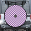 USE THE TIRE COVER SIZE CALCULATORAre you looking for unique tire covers? Check our Violet And White Gingham Pattern Print Tire Cover With Camera Hole on GearFrost. Our tire covers are handcrafted to the highest quality standards and made-to-order for you!