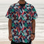Black Palm Leaf Aloha Pattern Print Men's Short Sleeve Shirt