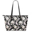Black Sunflower Pattern Print Leather Tote Bag With Zipper