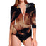 Watercolor Taurus Zodiac Sign Print Long Sleeve Swimsuit