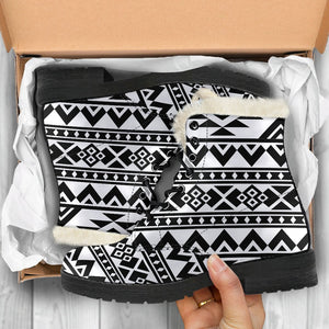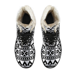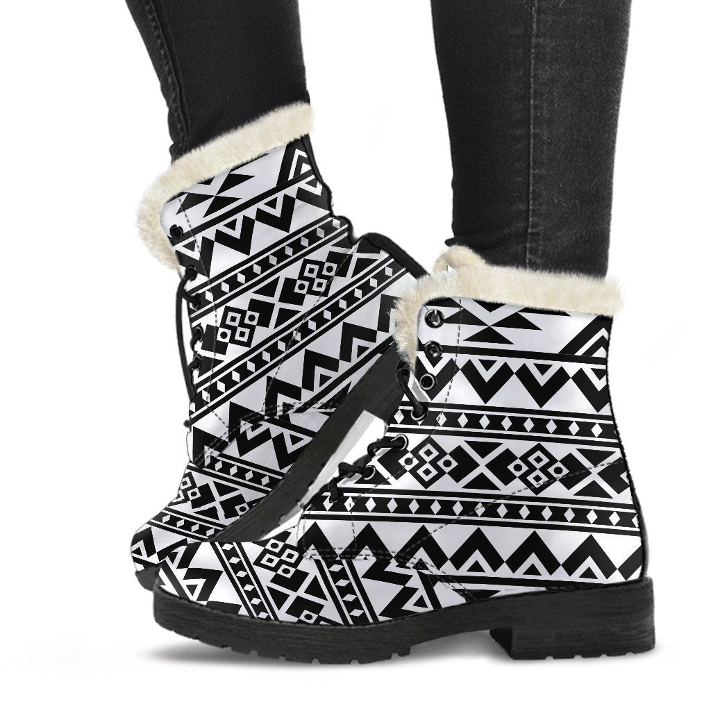 Combine cozy warmth with standout style in the versatile White And Black Aztec Pattern Print Faux Fur Leather Boots. Designed to keep you comfortable without compromising on fashion, these faux fur leather boots are a must-have addition to your footwear collection. Whether you’re braving chilly weather or adding an edgy touch to your outfit, these boots offer the perfect mix of practicality and personality.