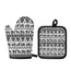 White And Black Indian Elephant Print Oven Mitt And Pot Holder Set
