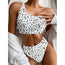 White And Black Music Note Pattern Print One Shoulder Bikini Set