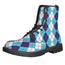 Step out with confidence in the White And Blue Argyle Pattern Print Lace-Up Boots. Built with a 100% vegan PU leather upper and a durable rubber outsole, these lace-up boots balance everyday comfort with reliable traction—great for daily wear without overpromising performance.