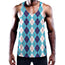 White And Blue Argyle Pattern Print Men's Workout Tank Top