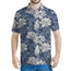 White And Blue Lotus Flower Print Men's Polo Shirt