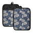 White And Blue Lotus Flower Print Pot Holders With Pocket