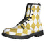 Step out with confidence in the White And Gold Harlequin Pattern Print Lace-Up Boots. Built with a 100% vegan PU leather upper and a durable rubber outsole, these lace-up boots balance everyday comfort with reliable traction—great for daily wear without overpromising performance.