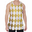Are you looking for unique tank tops? Check our White And Gold Harlequin Pattern Print Men's Velvet Tank Top on GearFrost. Our tank tops are handcrafted to the highest quality standards and made-to-order for you!