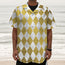 Are you looking for unique textured short sleeve shirts? Check our White And Gold Harlequin Pattern Print Textured Short Sleeve Shirt on GearFrost. Our shirts are handcrafted to the highest quality standards and made-to-order for you!