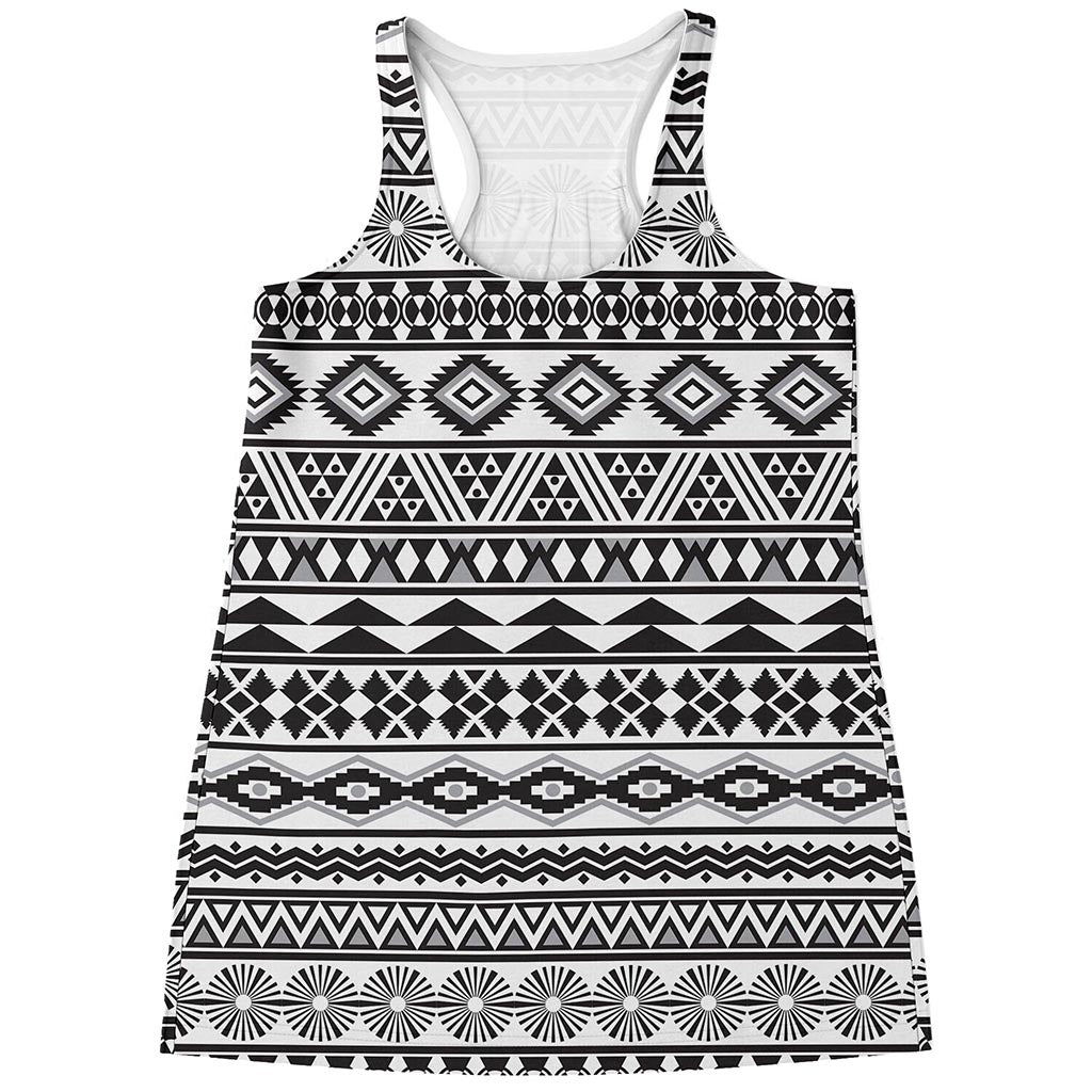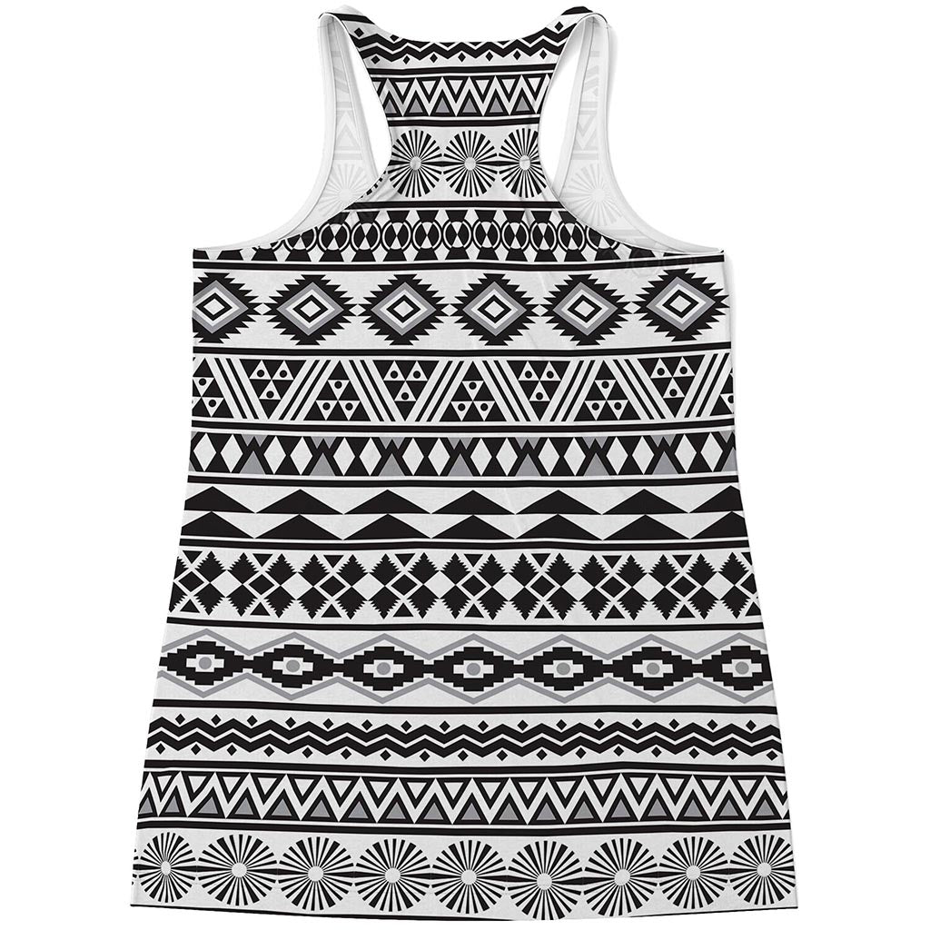 Stay cool and stylish with the versatile White And Grey Aztec Pattern Print Women's Racerback Tank Top. Designed for women who prioritize comfort and functionality, this racerback tank top is the perfect addition to your active and casual wardrobe. Whether you’re working out, running errands, or relaxing at home, this tank top offers a sleek and flattering fit that keeps you looking great and feeling confident.