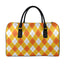 White And Orange Argyle Pattern Print Leather Duffel Bag