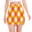 White And Orange Argyle Pattern Print Side Slit Mini Skirt