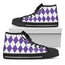 Are you looking for unique sneakers? Check our White And Purple Argyle Pattern Print Black High Top Sneakers on GearFrost. Our sneakers are handcrafted to the highest quality standards and made-to-order for you!