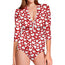 White And Red Heart Pattern Print Long Sleeve Swimsuit