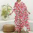 White And Red Heart Pattern Print Silk V-Neck Kaftan Dress