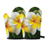 Keep your hands protected while cooking with the White And Yellow Plumeria Flower Print Oven Mitts. Made from durable polyester, these oven mitts provide reliable heat insulation and comfort, making them a practical choice for everyday kitchen tasks or outdoor grilling.