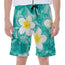 White And Yellow Plumeria In Water Print Men's Beach Shorts