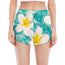 White And Yellow Plumeria In Water Print Women's Split Running Shorts