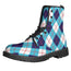 Step out with confidence in the White Blue And Red Argyle Pattern Print Lace-Up Boots. Built with a 100% vegan PU leather upper and a durable rubber outsole, these lace-up boots balance everyday comfort with reliable traction—great for daily wear without overpromising performance.