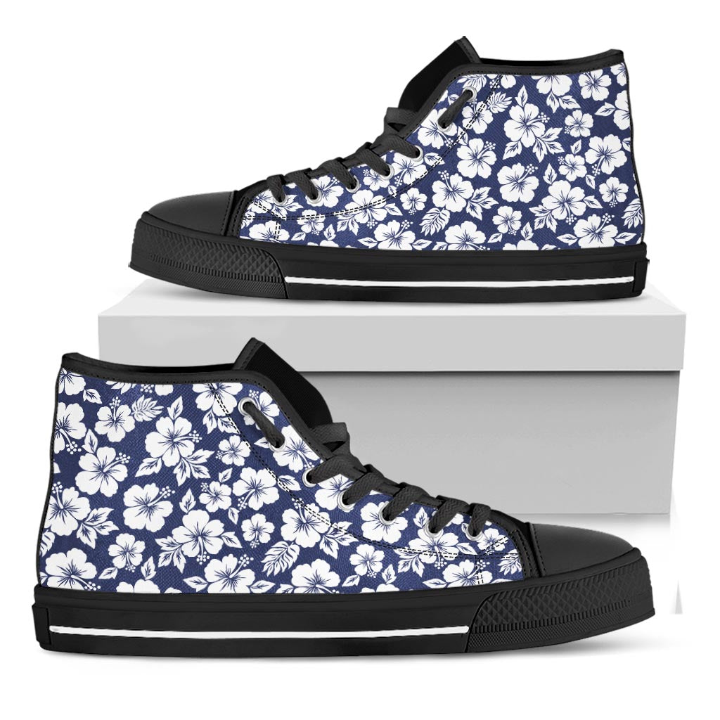 Are you looking for unique sneakers? Check our White Blue Hibiscus Floral Pattern Print Black High Top Sneakers on GearFrost. Our sneakers are handcrafted to the highest quality standards and made-to-order for you!