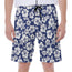 White Blue Hibiscus Floral Pattern Print Men's Beach Shorts