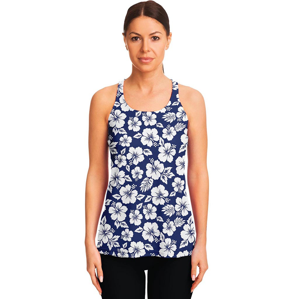 Stay cool and stylish with the versatile White Blue Hibiscus Floral Pattern Print Women's Racerback Tank Top. Designed for women who prioritize comfort and functionality, this racerback tank top is the perfect addition to your active and casual wardrobe. Whether you’re working out, running errands, or relaxing at home, this tank top offers a sleek and flattering fit that keeps you looking great and feeling confident.