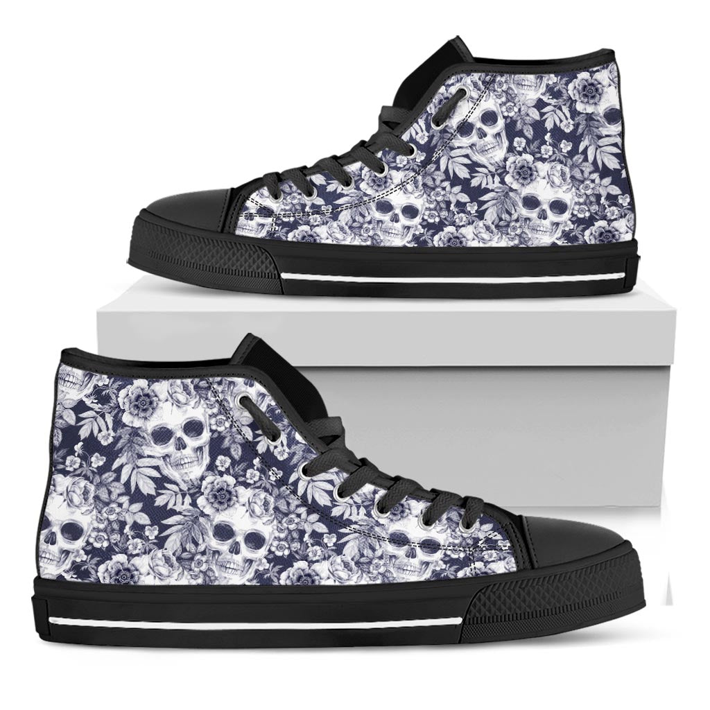 Are you looking for unique sneakers? Check our White Blue Skull Floral Pattern Print Black High Top Sneakers on GearFrost. Our sneakers are handcrafted to the highest quality standards and made-to-order for you!