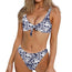 White Blue Skull Floral Pattern Print Front Bow Tie Bikini