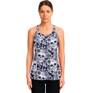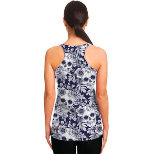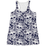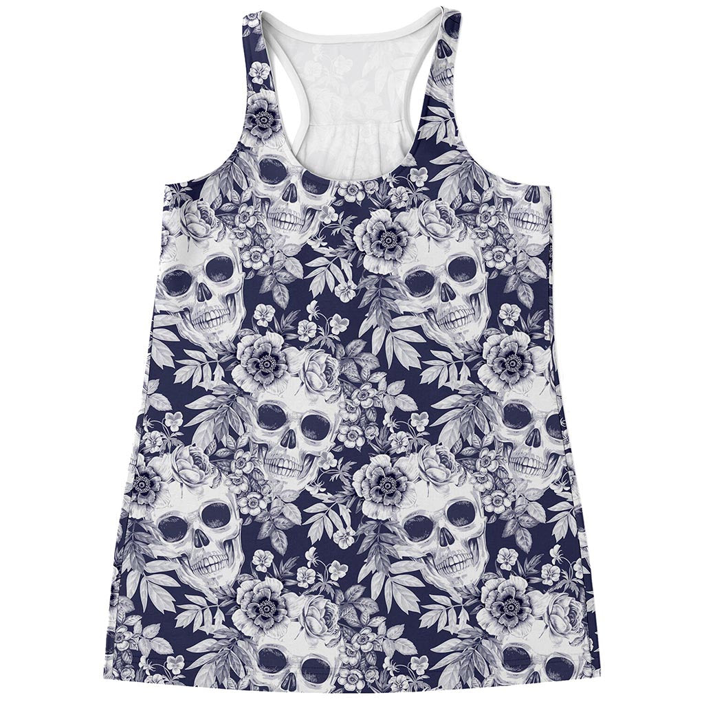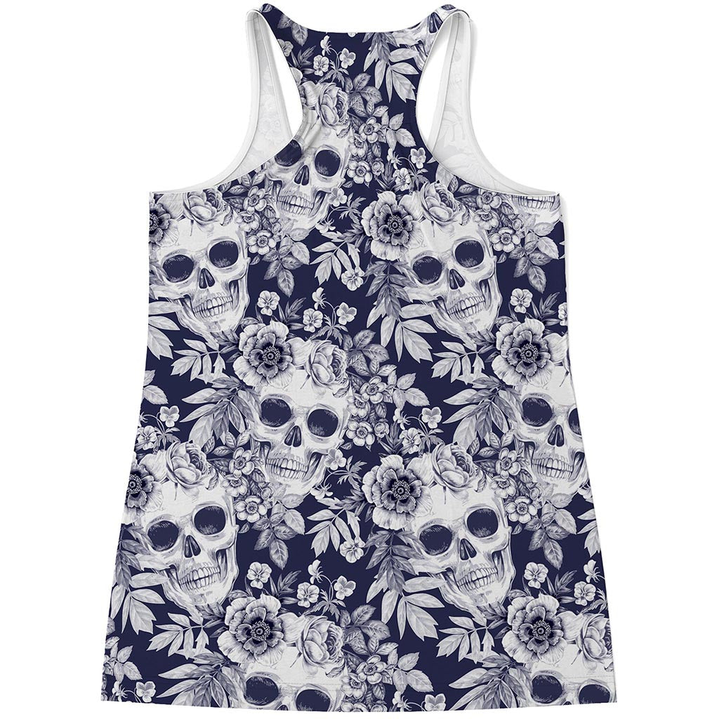 Stay cool and stylish with the versatile White Blue Skull Floral Pattern Print Women's Racerback Tank Top. Designed for women who prioritize comfort and functionality, this racerback tank top is the perfect addition to your active and casual wardrobe. Whether you’re working out, running errands, or relaxing at home, this tank top offers a sleek and flattering fit that keeps you looking great and feeling confident.